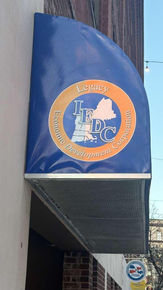 Roof like shelter of canvas or other material extending over a doorway, we do it on a printed translucent vinyl.